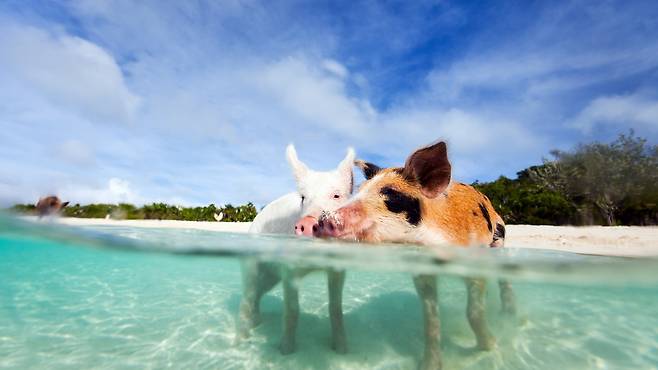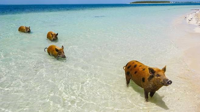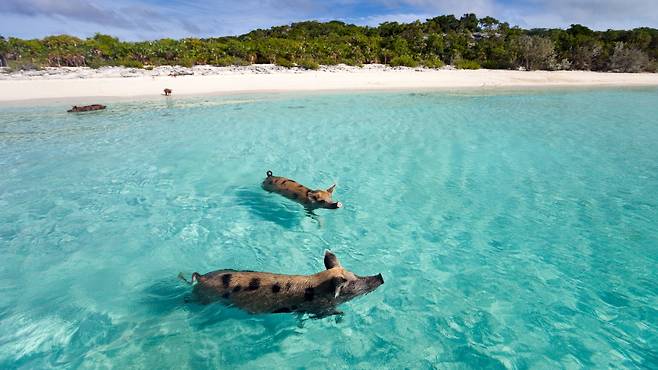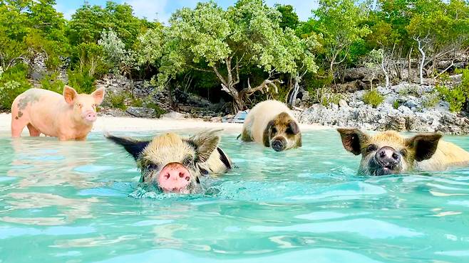 바하마의 수 많은 섬들 중 가장 인기가 많은 곳은 단연 '수영하는 돼지'가 있는 피그비치(pig beach)입니다.