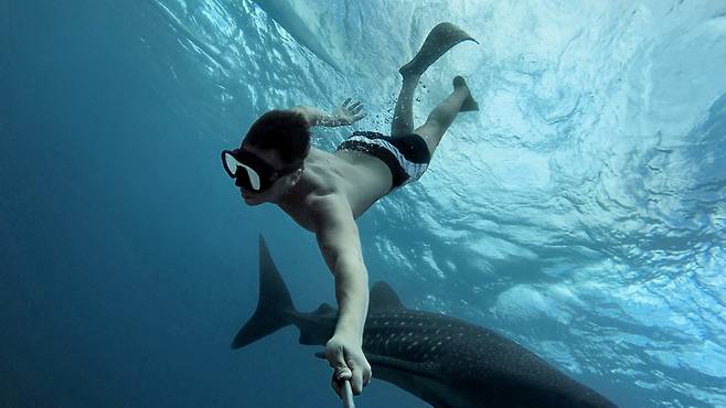그런데 이 곳에서는 상어도 위협과 공포의 대상이 되진 않고, 오히려 인간들과 같이 수영하고 노는 친구가 됐습니다.
