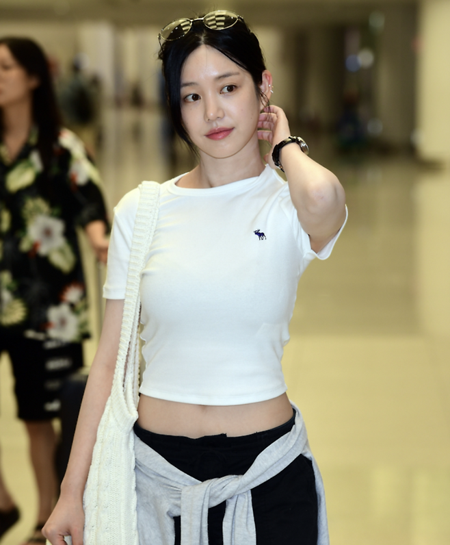 이유비 공항패션, 크롭티 코디로 남심 저격!