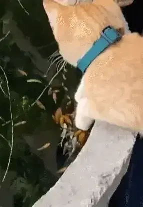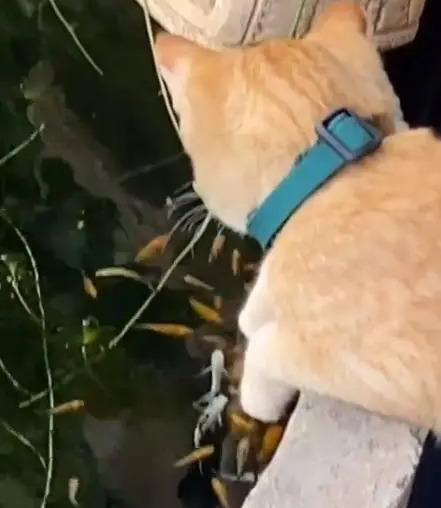 하지만 가까이 다가가 보니 고양이는 멍 때리는 게 아니었습니다! 바로, 닥터피시로 발 마사지를 즐기고 있었던 것입니다!