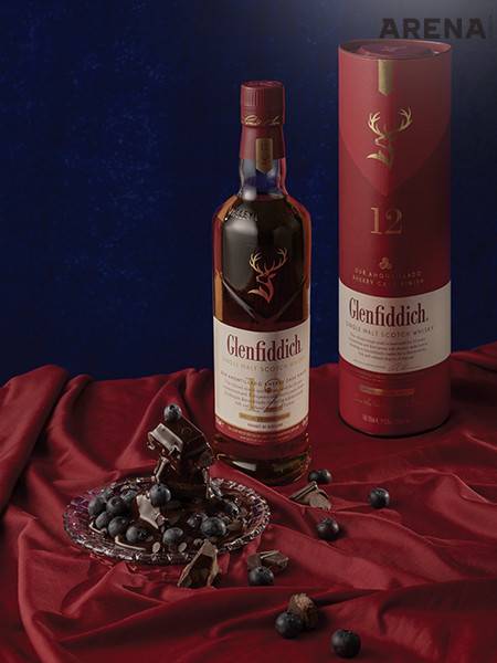 글렌피딕 12년 셰리 캐스크 피니시는 블루베리 다크 초콜릿과 페어링하길 추천한다. 말린 베리류의 농축된 달콤한 향기와 쌉싸름한 다크 초콜릿의 맛이 글렌피딕의 스파이시한 피니시와 조화를 이루어 서로의 풍미를 더욱 끌어올려준다. 추천하는 페어링 방법은 위스키를 먼저 마시고 입안에 잔향이 남아 있을 때 바로 초콜릿 한 조각을 먹어서 풍미의 어울림을 느껴보는 것이다.