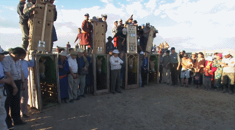 트럭에 실려 타킨탈 재도입 센터로 향하는 중