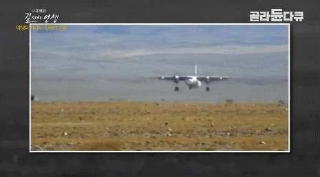 몽골 불간 섬(Bulgan sum) 비행장에 착륙하는 비행기