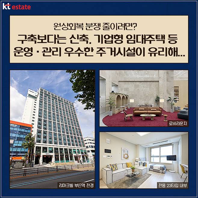 이러한 분쟁을 막기 위해 신축 주거시설을 선택하는 것도 하나의 방법입니다. 그중 하나로 기업형 임대주택을 들 수 있습니다. 최근 정부에서는 전세 사기를 막기 위한 방편으로 기업형 장기임대주택 활성화를 제언하며 화제가 됐는데요. 기업형 임대주택은 기업이 계약부터 시설 운영, 사후 서비스에 이르기까지 주거시설에 관한 전반적인 관리를 책임지고 하므로 안심하고 거주할 수 있다는 장점이 있습니다.