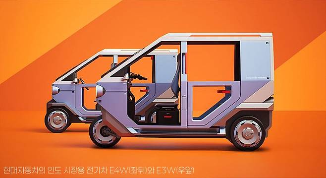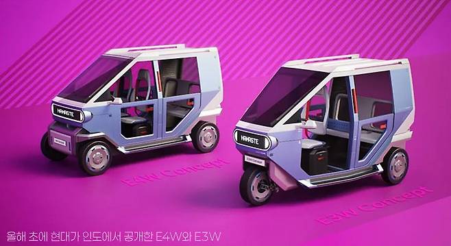 올해 1월에 현대자동차가 인도 교통 상황에 맞춘 소형 전기차량 E3W, E4W 콘셉트를 공개했었습니다. 이들 전기차량 콘셉트를 공개한 행사는 1월에 인도 델리에서 열렸던 ‘바랏 모빌리티 글로벌 엑스포 (Bharat Mobility Global Expo) 2025’ 였다고 합니다.