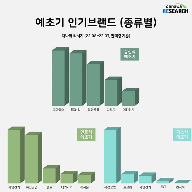 반면 연료식 예초기와 가스식 예초기는 특정 브랜드들이 뚜렷한 강세를 나타내고 있다. 연료식 예초기 시장에서는 계양전기와 북성공업이 높은 점유율을 가져가면서 양강 구도를 보이고 있으며, 가스식 예초기 시장에서는 북성공업이 독주 체제를 이어가고 있는 모습이 눈에 띈다.
