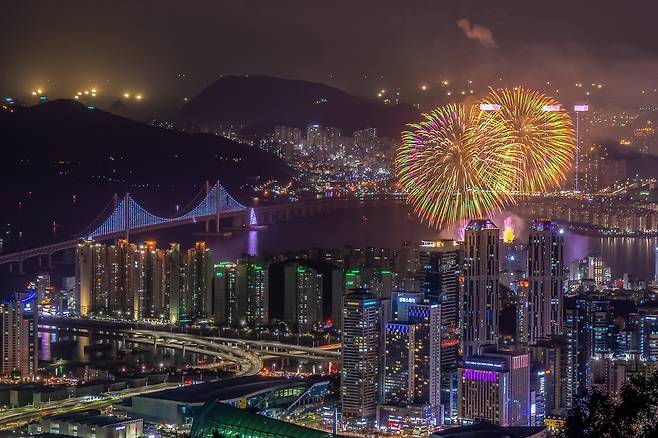 높은 전망대에서 바라보는 불꽃은 해변과는 또 다른 매력을 선사합니다. 특히, 황령산에서는 불꽃놀이뿐만 아니라 부산의 낭만적인 야경이 어우러지는 환상적인 경관은 덤이라 할 수 있는데요. 시내의 불빛과 함께 폭발하는 화려한 불꽃이 더욱더 아름답게 느껴질 것입니다.