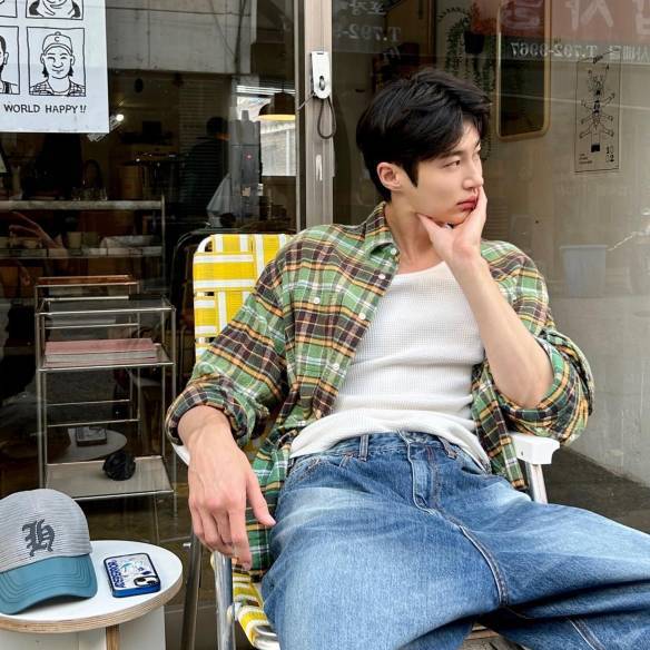 흰 티와 청바지, 극락 조합을 적극 활용하는 변우석은 그저 빛! 단순한 조합이지만 남다른 비율 덕분에 특별해 보인다. 어딘가 옷이 심심하게 느껴지는 날에는, 체크 셔츠나 벨트, 액세서리로 포인트를 주는 것도 방법! 백전백승 남친룩이 여기 있네~.