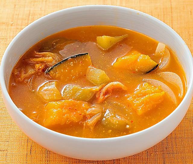 단호박을 깨끗하게 씻은 뒤 절대 껍질을 벗기지 말고 통째로 찌개나 국에 넣어 조리하는 것이 좋습니다.