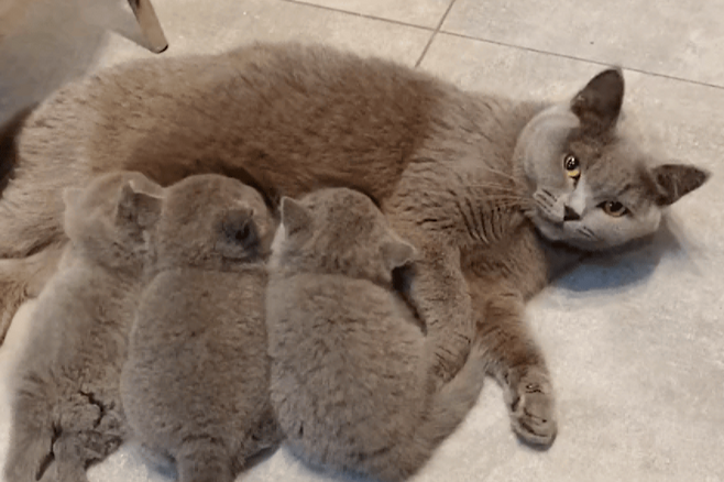 어미 고양이는 새끼를 낳은 후, 젖을 먹일 때마다 조금씩 절실함을 느끼지만, 엄마 고양이의 사랑은 줄어들지 않습니다!
