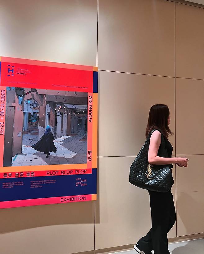 특히 전시회에서 포착된 큼직한 퀼팅 숄더백은 룩 전체에 고급스러움을 더했죠.