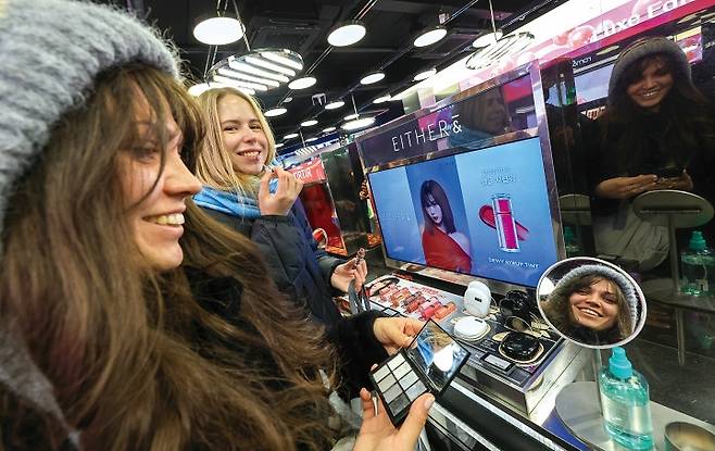 화장품 진열대 앞에는 외국인들이 잔뜩 몰려 있었습니다. 20대 일본인 여성이 주저 없이 화장품을 집어 들고는 “한국 아이돌이 쓰는 제품이라 궁금했다”며 “유튜브에서 자주 봐서 금방 찾을 수 있었다”고 말했습니다.