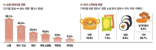 이 같은 변화는 품목별 소비에서도 드러납니다. 작고 가벼운 ‘K-라이프 스타일 소품’ 소비가 빠르게 늘었습니다. 2025년 1~9월 기준으로 전년 동기 대비 뽑기(가챠)샵(142.0%), 문구(48.7%), 서점(39.9%) 소비가 큰폭으로 증가했습니다.