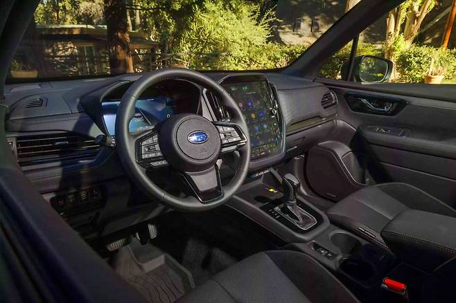 2025년형 포레스터 하이브리드는 디지털 계기판과 11.6인치 인포테인먼트 디스플레이를 기본으로 제공한다.