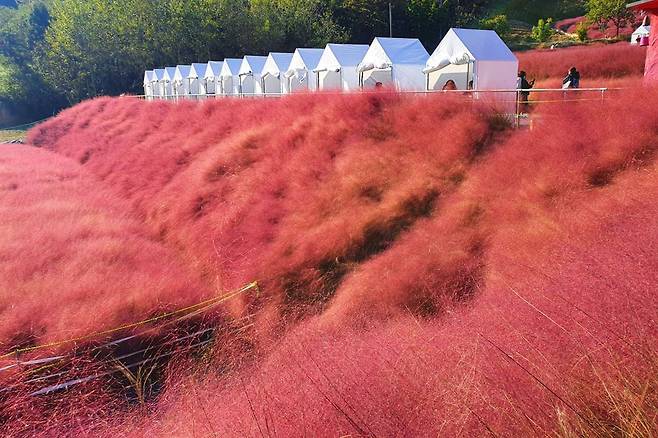 66,000㎡ 에 달하는 넓은 정원은 핑크뮬리, 핑크 메밀, 소나무와 천일홍, 백일홍 등 10여만 본의 다양한 식물들로 가득 차 있어 방문객들에게 강렬하고 잊지 못할 추억을 선사합니다.