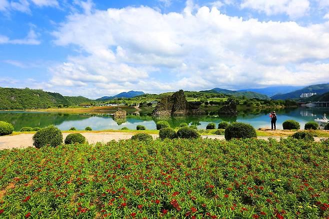 사계절 내내 다양한 꽃들이 만발하는 곳으로 가을에는 특히 황화 코스모스와 백일홍, 댑싸리가 가을로 물들면서 화려한 풍경을 자아내고 도담삼봉과 함께 어우러져 한 폭의 그림 같은 자연 경관을 보여줍니다.