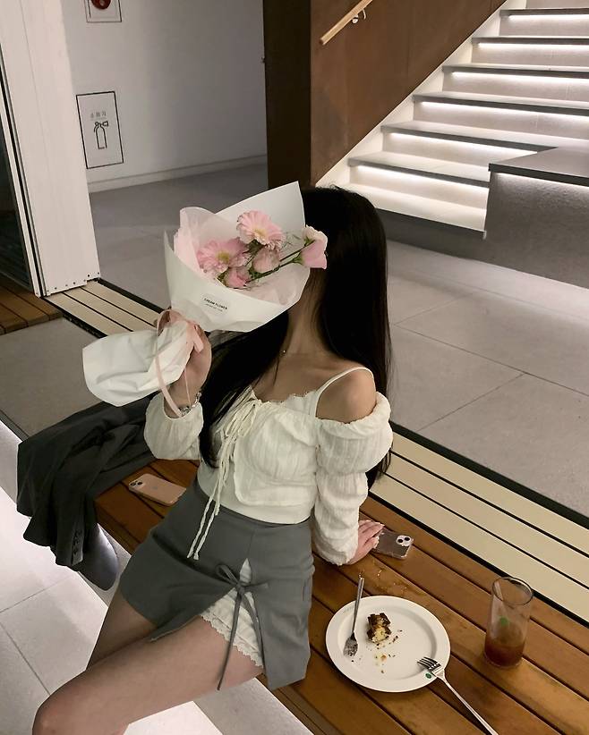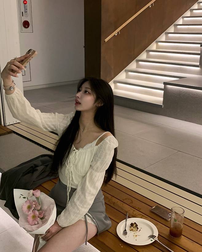 전체적으로 사랑스럽고 청순한 무드지만, 과하지 않게 포인트가 들어가 있어 데일리로도 손색없죠.