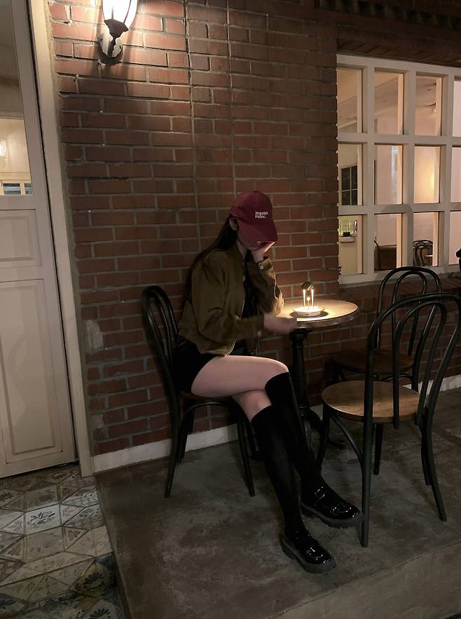 여기에 흰 스니커즈와 셔링 양말을 매치해 꾸민 듯 안 꾸민 듯한 캠퍼스룩 감성으로 마무리했어요.