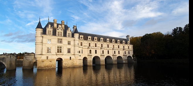 슈농소 성은 500년의 역사를 자랑하는 건축물로, 루아르 강을 가로지르는 독특한 구조로 유명하다.