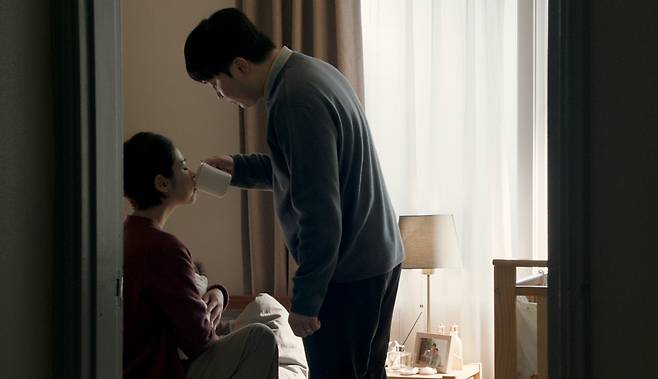 아내 ‘해미’(심은우)의 물을 챙겨주고, 서툴지만 사과를 깎는 등 묵묵히 집안일을 도와주는 평범한 일상 속 모습들이 담겨있다.