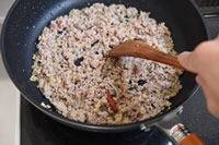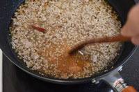 3. 돼지고기를 넣고 중불로 올려 고기가 익을 때까지 볶은 뒤, 소금과 후추로 간한다.
