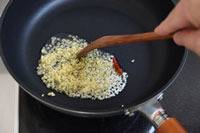 2. 팬에 식용유를 두르고 다진 생강·마늘·고추를 넣어 약불에서 향을 낸다.