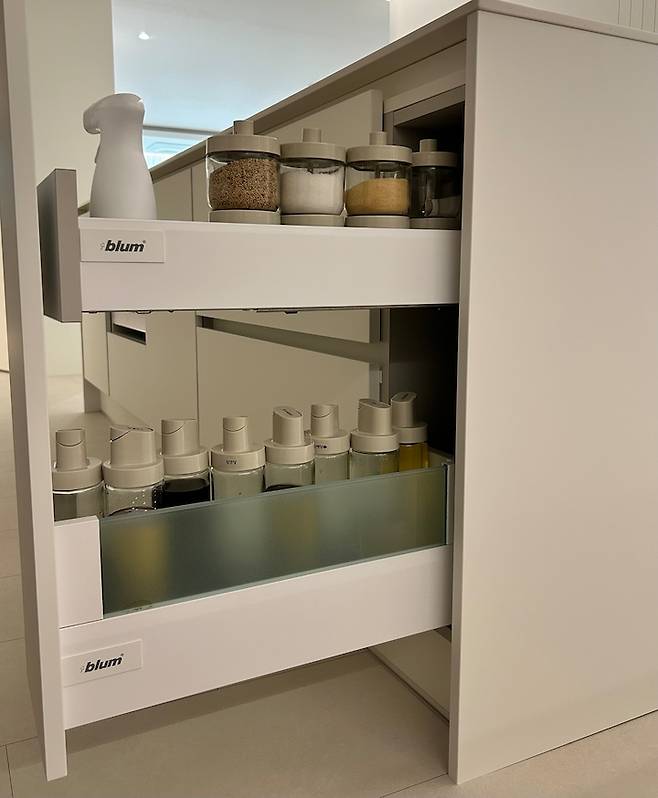 아일랜드가 워낙 크다 보니 수납장도 넉넉한 사이즈로 수납이 정말 편해요.