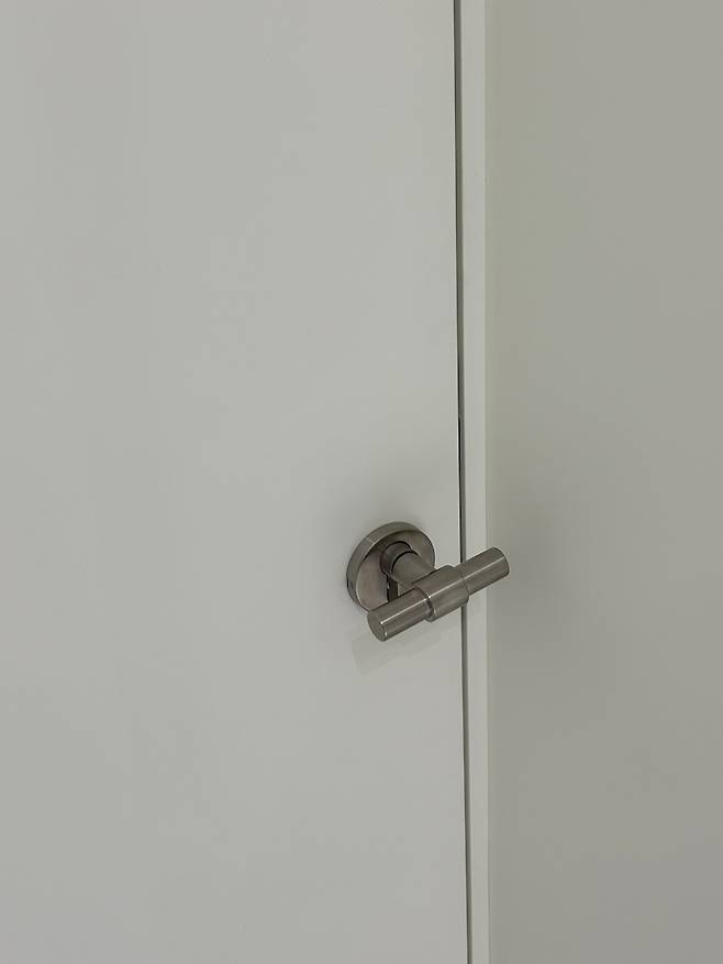 저희 집 모든 도어는 히든 도어예요. 튀어나옴 없이 매끄러운 느낌이 너무 좋더라고요. 손잡이는 기본 중에 기본 디자인으로 손자국이 잘 남지 않는 무광 손잡이로 했어요.