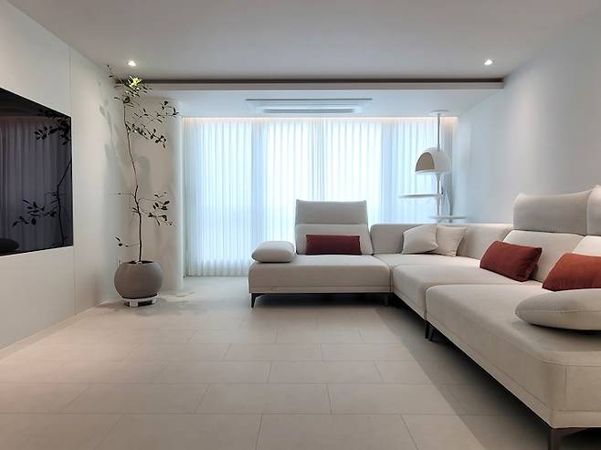 투베이 구조의 장점은 거실이 넓다는 것이죠! 발코니 확장을 통해 조금 더 넓은 거실을 맞이할 수 있었어요.