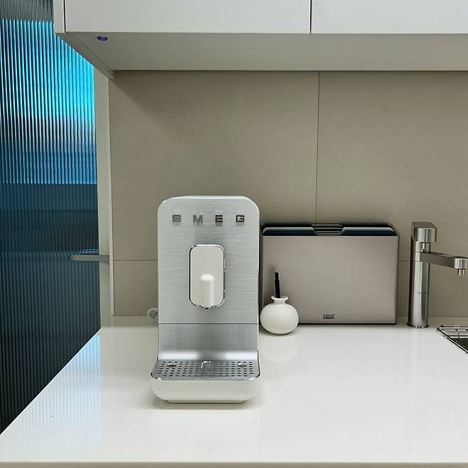 커피 좋아하는 남편이 가장 좋아하는 공간이에요. 스메그 커피 머신 심플하니 인테리어 효과로도 좋아요!