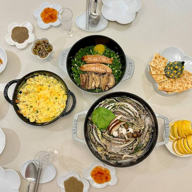 주방과 다이닝룸을 제 취향으로 맞추면서 음식 하는 행복한 취미가 생겼어요. 스타우브로 솥밥, 밀푀유나베 했는데 간단하지만 멋스러운 집들이 요리로 추천해요!