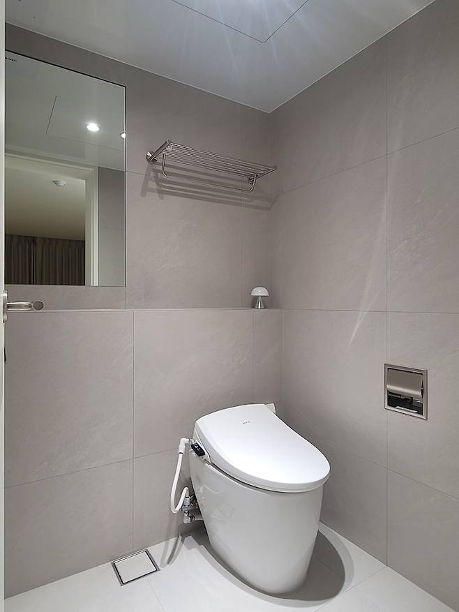 저는 비데가 꼭 있어야 하는 타입이라 안방 화장실은 일체형 비데를 설치했어요. 샤워공간 바로 옆이라 걱정이 되었지만 웬만한 생활방수는 되더라고요.