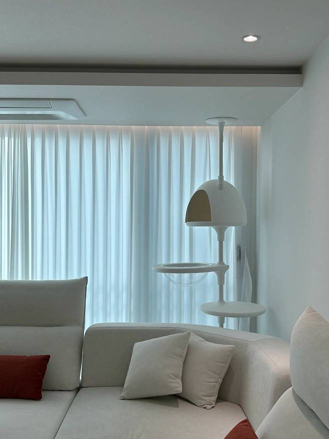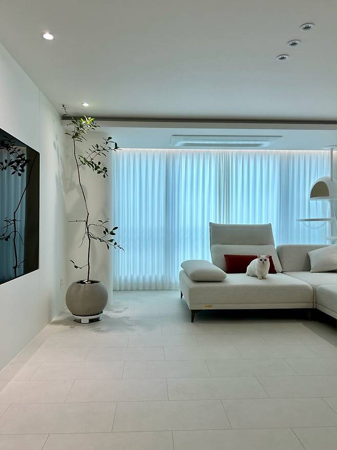 커튼이 속지라서 낮에 커튼을 치고 있어도 전혀 답답한 감이 없어요. 흰색이라 오히려 집이 더 환해지는 느낌입니다.