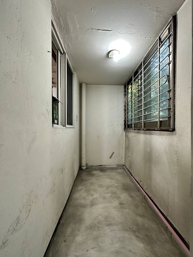 입구방 발코니 공간도 확장을 진행했어요. 바로 요기가 냉장고 자리가 되었답니다. 보통 주방 디자인은 아일랜드를 한 쪽 벽면에 세팅하고 냉장고를 같은 벽면에 세워두는 편인데 저희는 아일랜드를 정가운데 길게 두었기 때문에 냉장고 자리가 마땅치 않았어요.