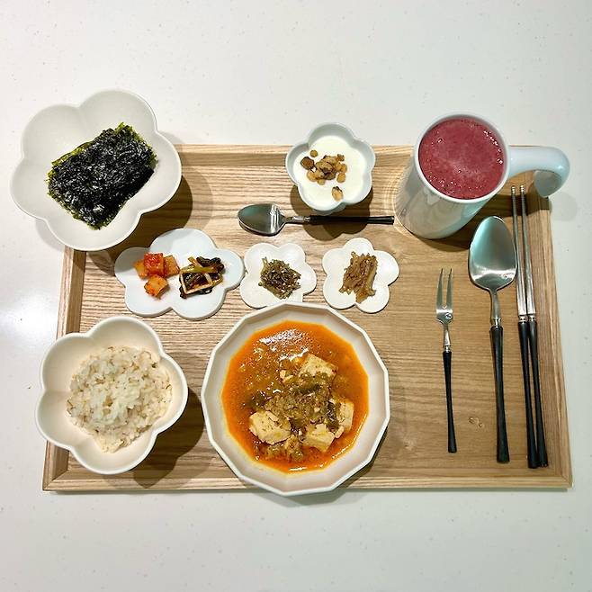 저희 주방은 김은호 작가님의 도자기 '세라믹몽'에서 모두 맞추었어요. 무광, 유광, 디자인 별로 정말 많은데 정말 튼튼하고 깔끔 담백한 디자인이라 몇 년이 지나도 질리지 않을 듯해요 ! 예쁜 나무 트레이에 올려 먹으면 밥맛이 더더 좋아지는 매직!