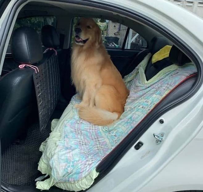 공개된 사진 속에서 골든 리트리버 강아지는 세상 신난 모습을 하고 있었는데요. 아무래도 차량에 올라타라는 집사의 말에 산책 가는 줄 알았던 모양입니다.