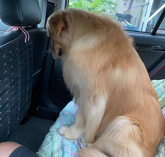 하지만 기쁨도 잠시, 골든 리트리버 강아지는 고개를 푹 떨구는 것이 아니겠습니까. 알고 봤더니 집사가 산책 가려고 차량에 타라고 한 것은 아니었다는 점입니다.