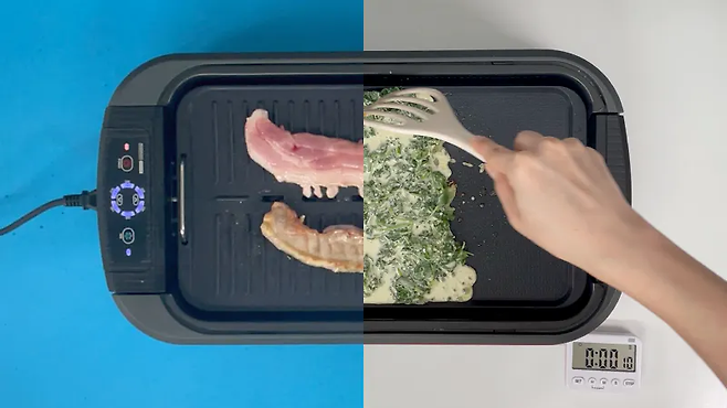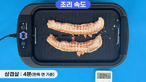 삽겹살은 한쪽 면 기준 약 4분 정도, 부침개는 한쪽 면 기준 2분 정도면 잘 조리될 정도로 전기그릴 중에서는 속도가 매우 빠른 편이었습니다.