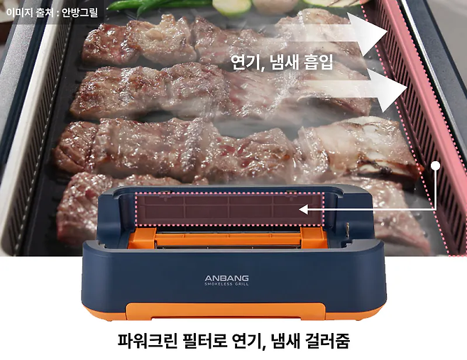 실내에서 전기그릴, 팬 등을 활용하여 고기를 구워먹을 때 가장 부담스럽고 꺼려지는 부분은 연기와 냄새인데, 안방그릴로 이런 고충을 해소할 수 있었습니다.