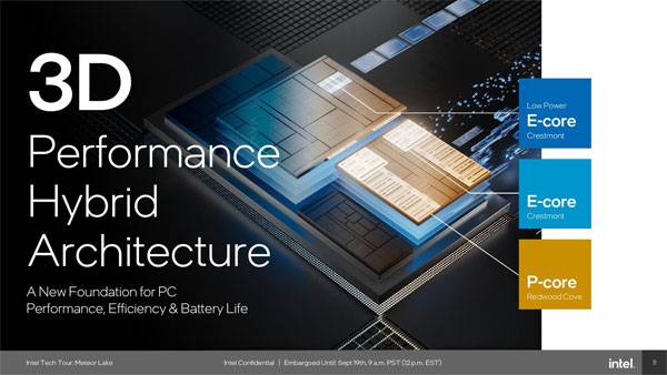 P-코어와 E-코어 외에 인공 지능 가속을 위한 NPU(Neural Processing Unit)가 포베로스 3D 패키징 기술을 통해 통합되며, 구체적인 정보는 공개하지 않았지만 새로운 디자인을 통해 놀라운 전력 효율을 구현해 냈다고 자부심을 표현했다.