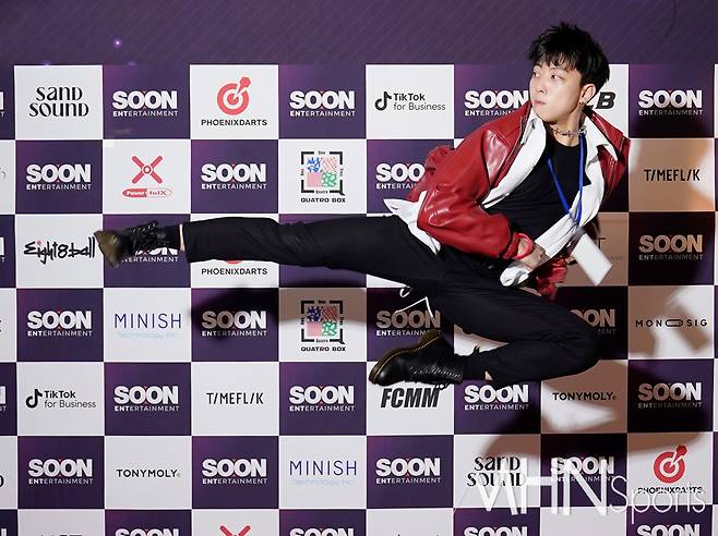 크리에이터 최사범이 포토월에서 포즈를 취하고 있다.