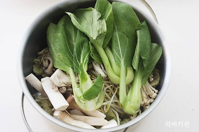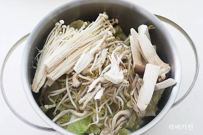 배추, 청경채, 숙주나물, 팽이버섯을 준비합니다