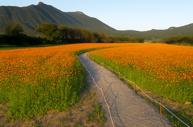 ▶ 오전 이른 시간이나 오후 석양 무렵 방문하면 꽃밭과 산세가 빚어내는 최고의 풍경을 만날 수 있습니다.