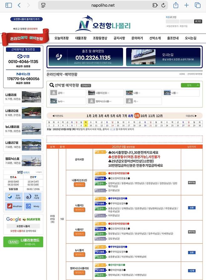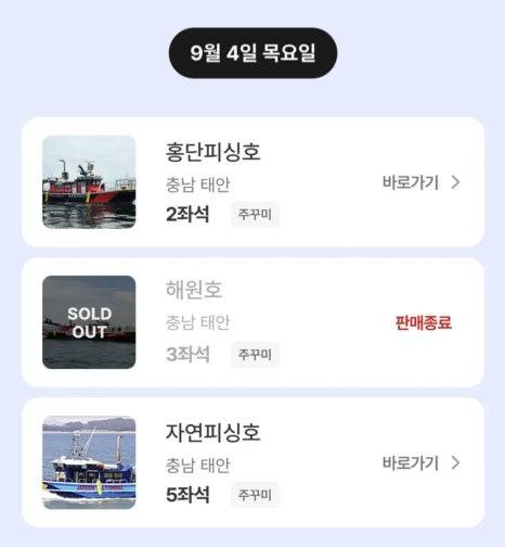 ★ 날짜에 맞는 선사 예약(홈페이지 / 앱)