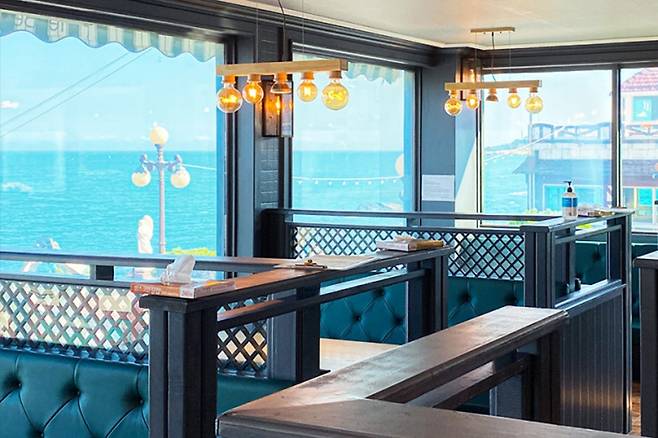 옥상 루프탑 창가에 앉으면 푸른 바다와 하늘이 한눈에 들어오는 시원한 풍경이 압권이며, 마치 동남아의 해변카페에 온 것만 같은 분위기가 풍기죠. 저녁 시간 야경도 상당히 매력적이니, 낮에는 기장 근처에서 신나게 놀고 저녁에는 로맨틱한 시간을 만들어 보는 것도 좋을 것 같습니다.