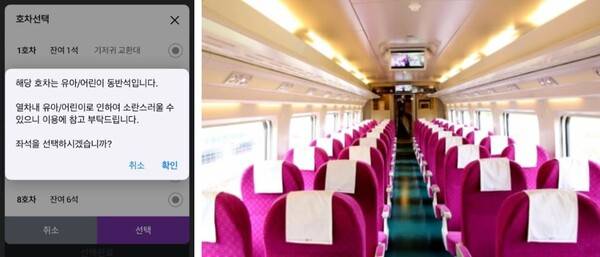 어린 아이가 있는 가족 단위 여행객이라면 5~6호차를 추천드립니다. 열차 칸 바로 옆 수유실과 기저귀 교환대 및 화장실도 가까이 있어 아이와 함께하는 여행에서는 좋은 선택지입니다.