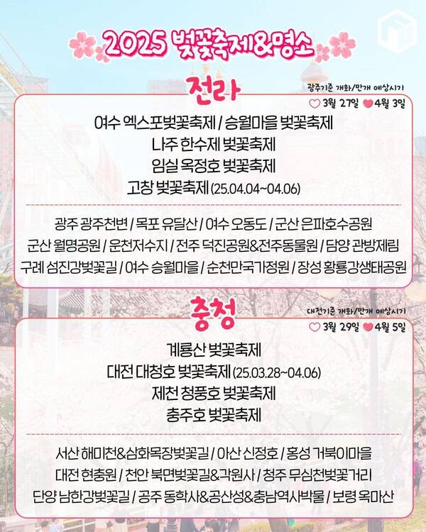 2-3. 2025 전라, 춘천 벚꽃축제 및 명소