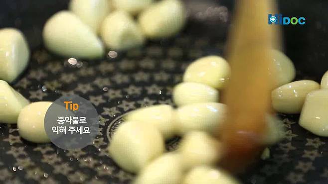 ✔ 팬에 기름을 두르고 마늘을 넣어 볶아줍니다.