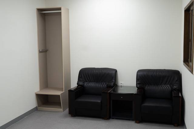 사진 속 감독실에는 회의용 테이블과 의자, 스태프 전용 라커 등이 설치되어 있는 것을 확인할 수 있다.