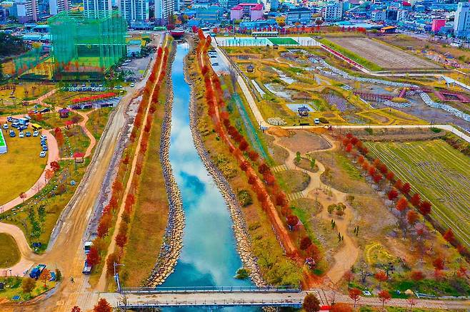 신운천 생태하천과 자연마당이 조화를 이루며 도심에선 보기 힘든 경관을 자랑한다.
